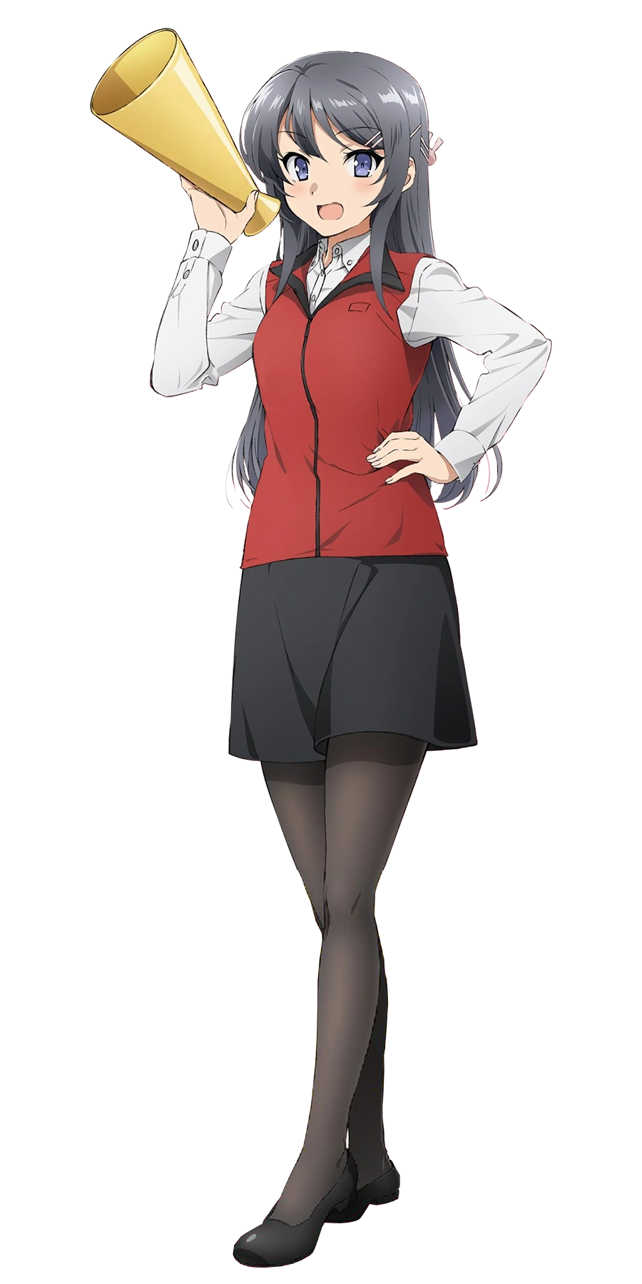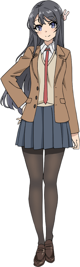 Mai Sakurajima (桜島 麻衣, Sakurajima Mai) is the main female protagonist of the Seishun Buta Yarou wa Bunny Girl Senpai no Yume wo Minai series. She is a 17-year-old fashion model, actress (on hiatus) and a third year at Minegahara High School, the same school as Sakuta Azusagawa. She also works as an office lady, besides being an actress, working in Bic Camera every Saturday.